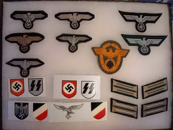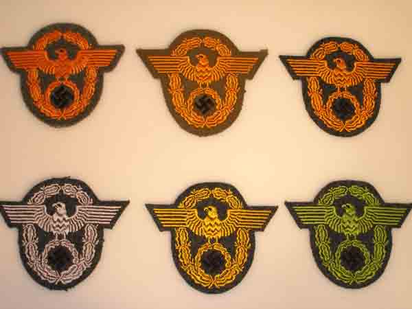 SS Eagles $16. Army Eagles $16. Police Eagle, see photo to right. Helmet emblems $5 each pair. Collar tabs $25/pair.