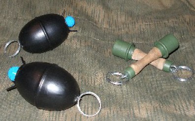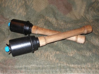These are inert repro grenades, meant to look the part of WWII German originals. All are generally of one-piece wood construction, and the end caps do not unscrew.